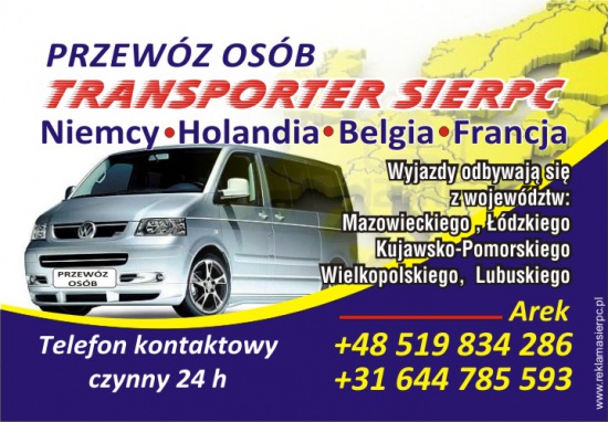 Wyjazdy do Niemiec, Holandii, Belgi odbywają się; Poniedziałek, Wtorek, Czwartek. Niedziela